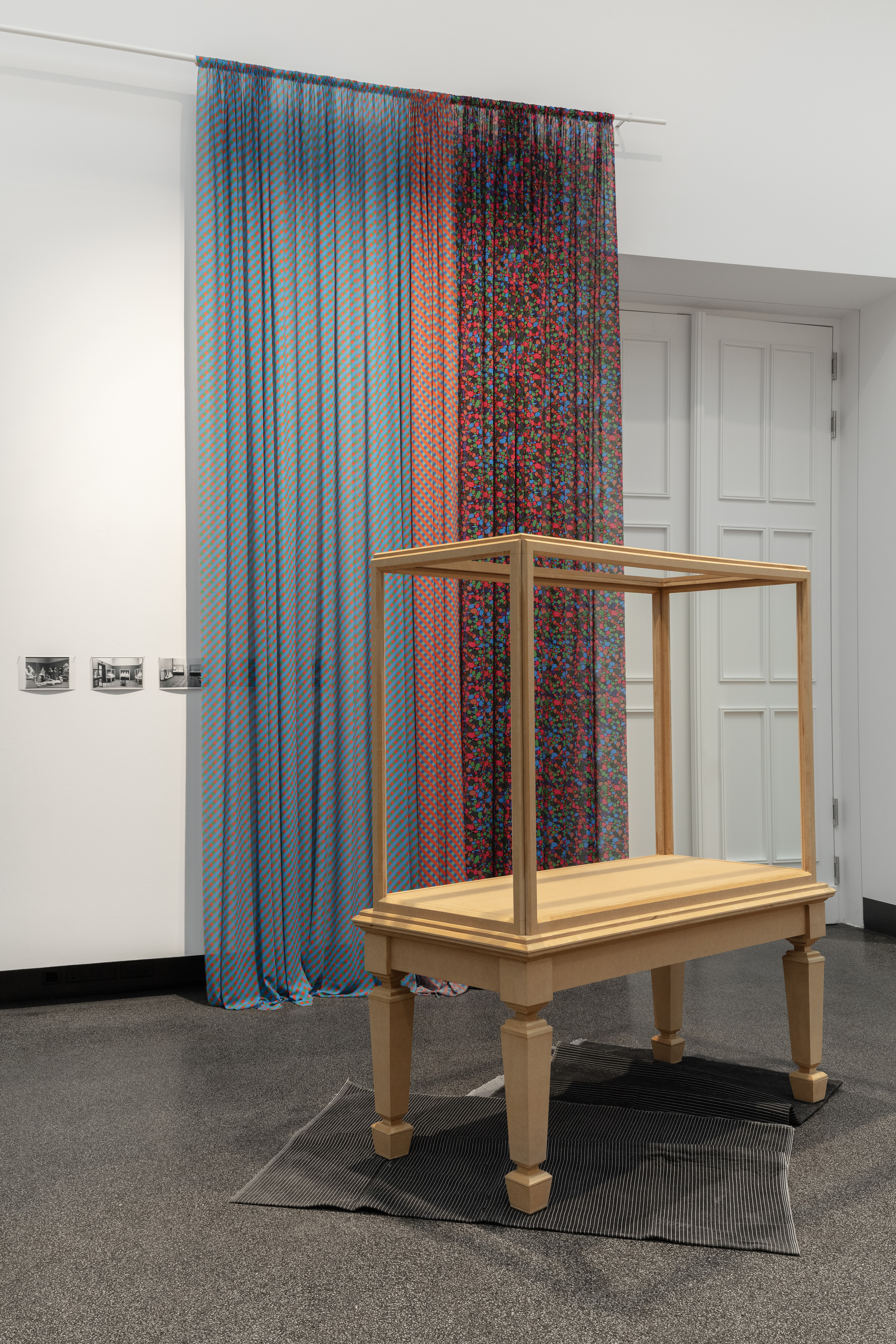 Hurth has replicated one of the display cases shown in the catalogue as part of her installation. It is turned into a display object of its own, thereby inverting the normal scheme of things in the exhibition context and drawing attention to the disruptions and lacunae in the system.