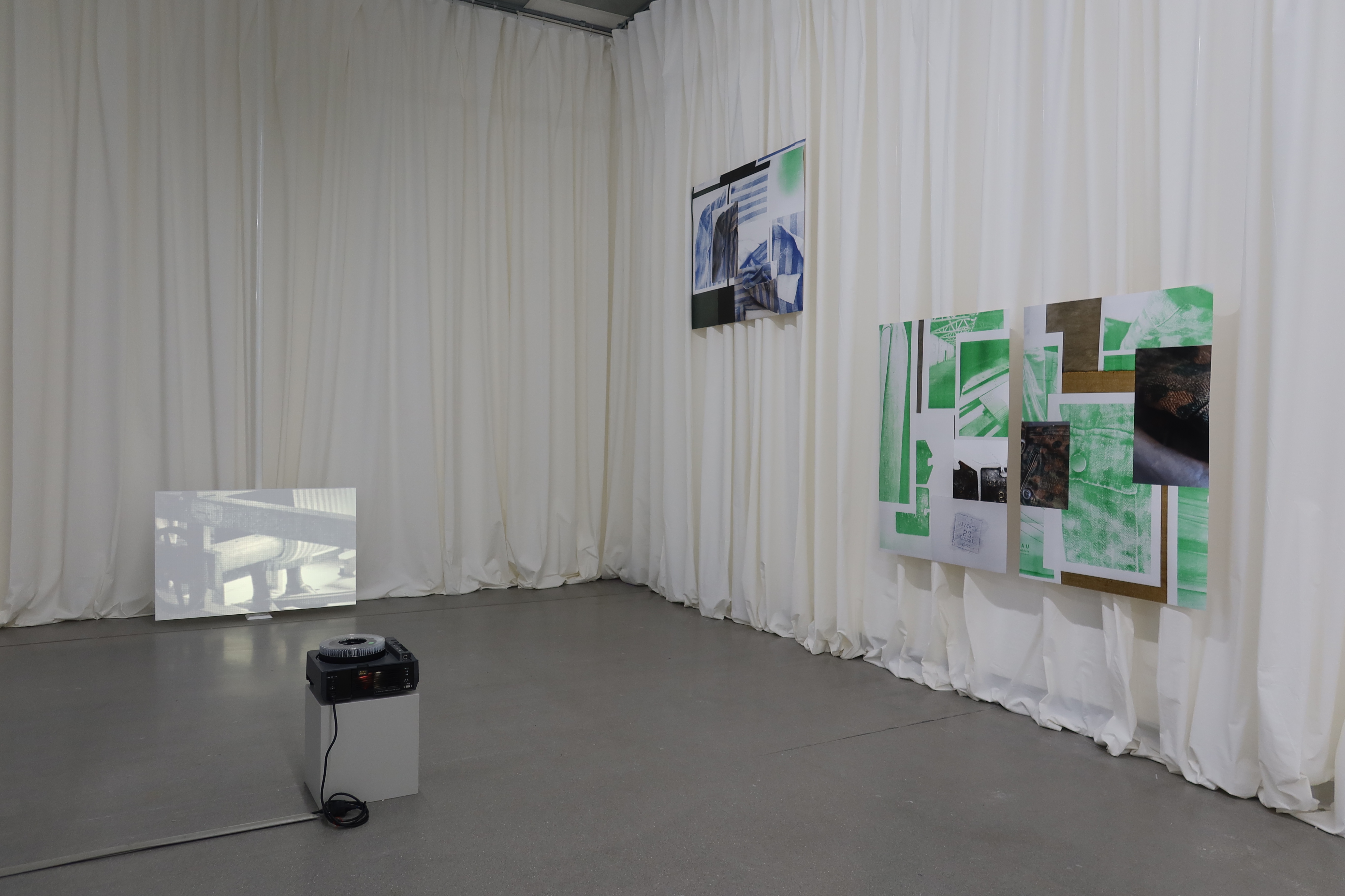 Designed as an overall installation, the exhibition presents both existing elements and new works. It includes textile and architectural installations that reference, among other things, a loom or courtroom, drawings, texts, slide and video projections, and historical documents. It also displays a selection of drawings and paintings by Violette Lecoq and Ceija Stojka, who were prisoners in Ravensbrück. Together, these elements form a multi-layered narrative about female perpetrators, enabling an empathic yet critical engagement with the subject.