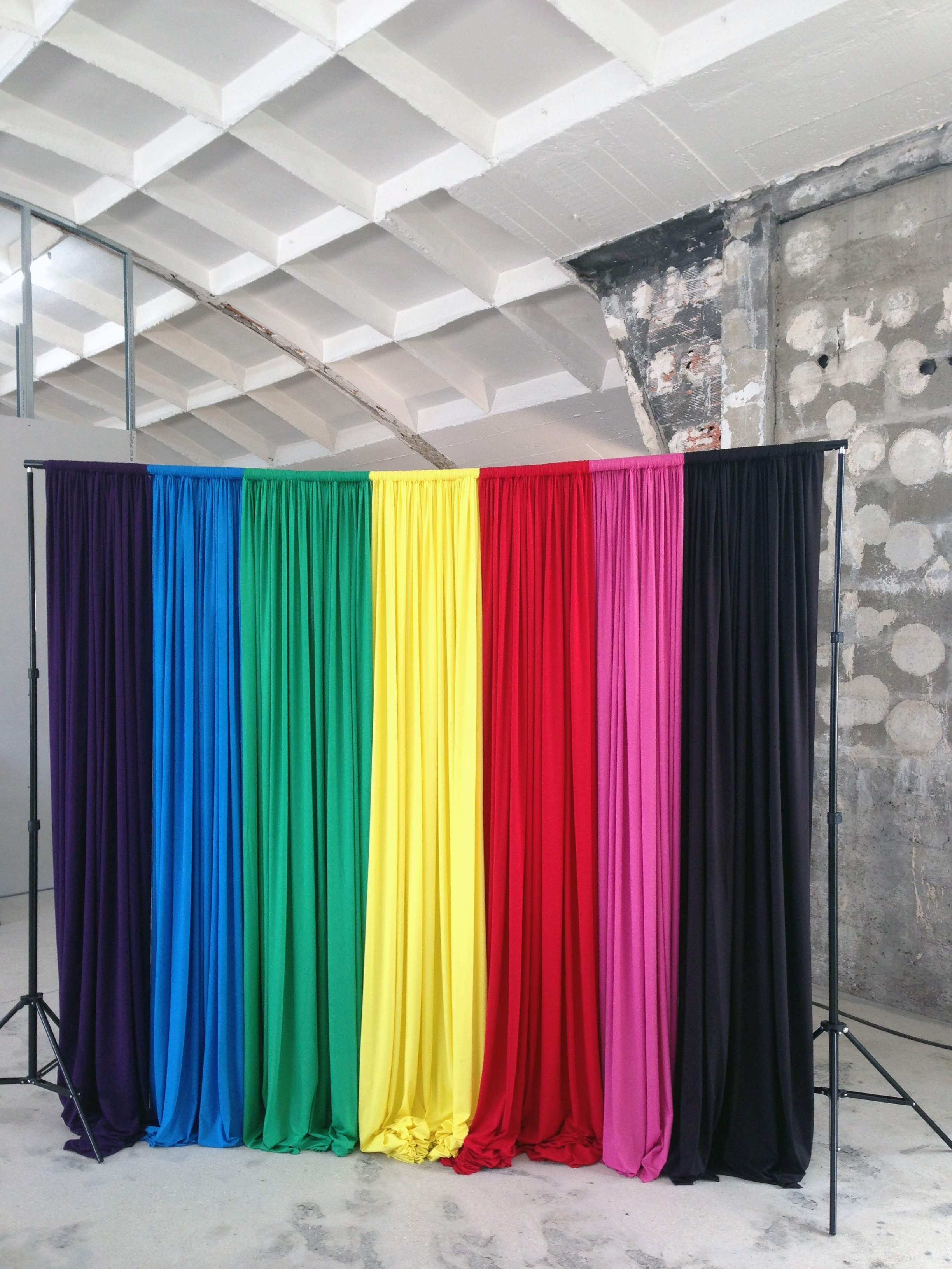 The curtain becomes an echo of previous manifestation of the work and the setting for the performance - ultimately quoting accousmatic strategies of speech and TV formats.